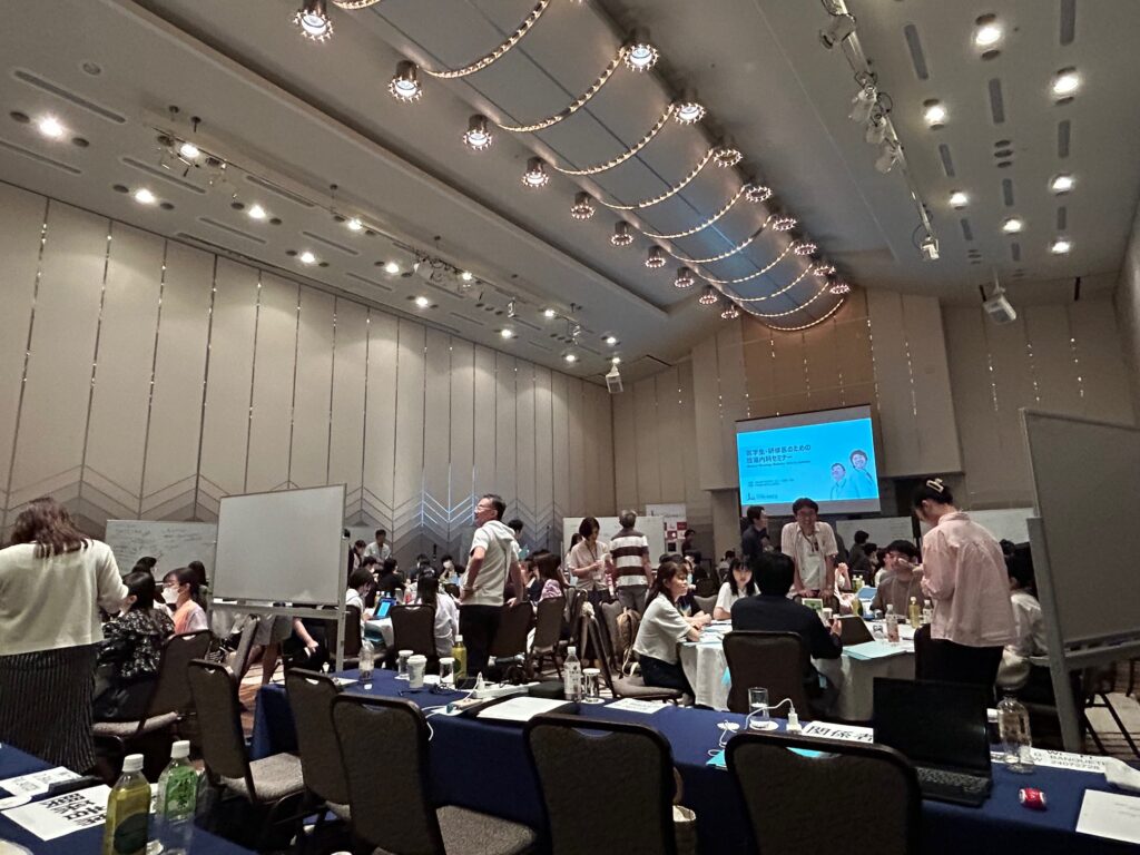 7/27-28と日本臨床腫瘍学会主催の「医学生・研修医のための腫瘍内科セミナー(Medical Oncology Seminar: MOS)」が、びわ湖大津プリンスホテルで開催されました。当院からは過去に河原先生と木村由美先生が参加しており、今回は三浦先生と斎藤先生が行き計90名の医学生と研修医が集いました。グループワークでは齋藤先生のチームが最優秀賞をとり表彰されました。がん体験患者である藤田理代さんの語りはとても心を打つ内容でした。医学生と研修医にとってはこれまで腫瘍内科医のキャリアパスが分かりにくかったようで、特に開業医の立場として講演された瀬尾卓司先生に感銘を受けていました。私は教育委員会委員長の立場で初めて参加しましたが、とても良いセミナーであり来年はJ1/J2を誘ってみようと思います。